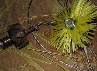 Еще один отличный вариант – изготовить такой ершик из дисковой щетки для болгарки. Такая щетка куда крепче предыдущих вариантов и справится даже с самой сажей. Важно только, чтобы диаметр щетки оказался равен диаметру дымохода, ведь щетинки у нее жесткие и изгибаются плохо: