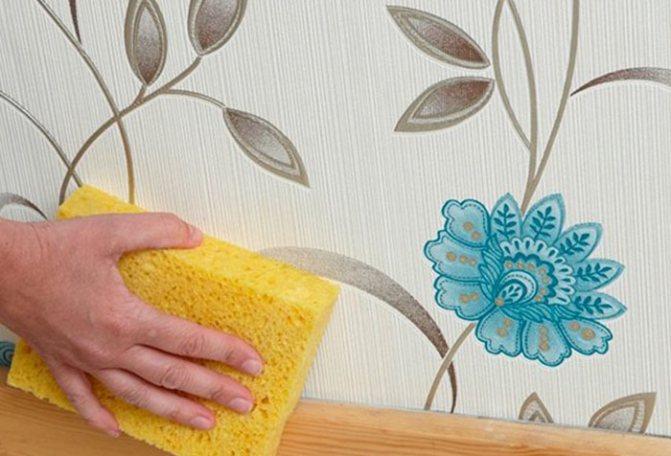 Их не рекомендуется использовать для бумажных однослойных обоев, так как в этом случае их можно повредить. Для всех остальных типов рекомендуется смочить продуктом (например, жидкостью для мытья посуды) губку, протереть ею поверхность, после чего смыть средство водой. Этот метод используется только для устранения свежих пятен, когда клей ещё не успел засохнуть.