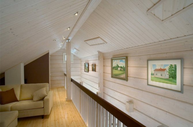 - Жилое помещение 1 этажа (гостиная, зал, коридор). Для них желательно выбирать составы, которые более ярко выразят и подчеркнут древесную структуру. В последнее время все больше владельцев дач предпочитают белый дом внутри.