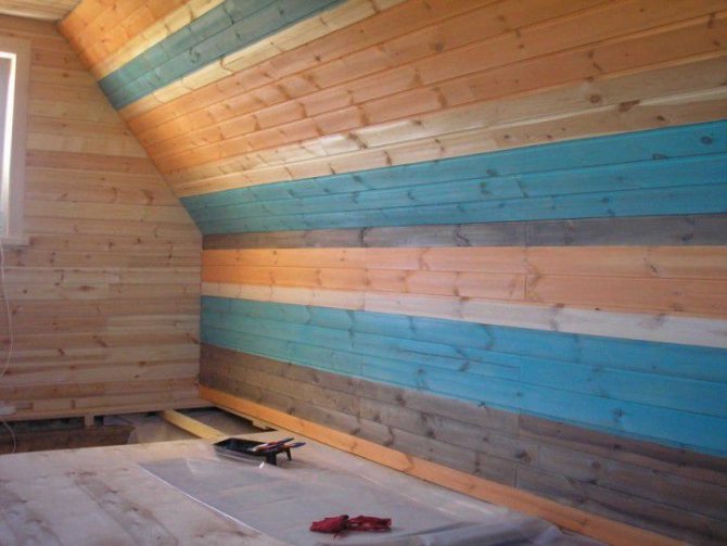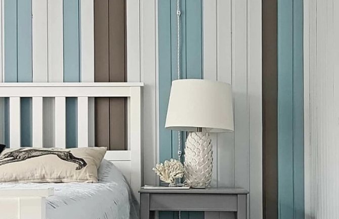 Крашеная вагонка — цвет белый внутри спальни разбит на цветные сегменты для контраста