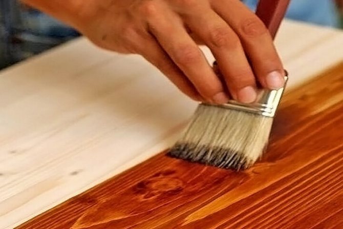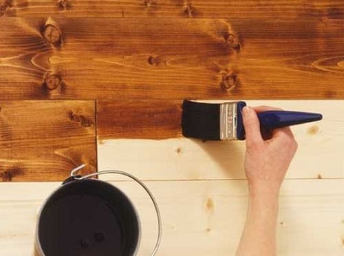 - Все доски покрываются грунтовкой, заполняющей ее поры. Помимо этого, применение грунтовки уменьшает расход последующего защитного покрытия. Идеальным вариантом, в этом случае будет придание грунтовке того же оттенка, который имеет лак, с одинаковым колером.