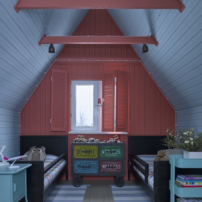 - Мансарду или жилой чердак. Как правило, это спальни, поэтому предпочтительны нейтральные тона.