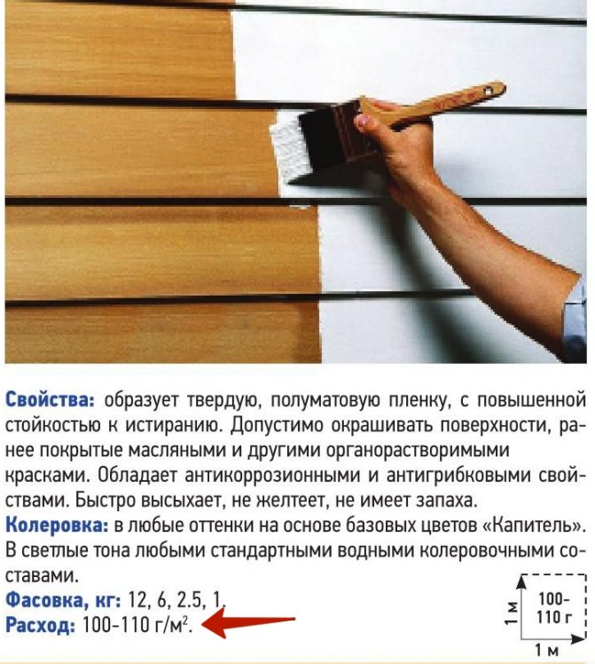 ОБРАТИТЕ ВНИМАНИЕ! 1 л краски расходуется на 16 м2 шлифованной древесины. При окрашивании свежеспиленной древесины 1 л хватает на 8-10 м2. Более экономный расход показывает краскопульт, затем валик и самый «прожорливый» способ – малярная кисть.