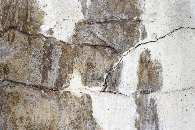 Случается растрескивание цементной штукатурки в новых строениях или зданиях, возведенных на площадках с нестабильными грунтами. Здесь усадка происходит неравномерно, конструкции испытывают внутреннее напряжение, что является причиной больших и глубоких трещин.