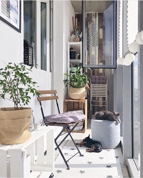 Балкон — это пространство, подверженное влиянию погоды: перепадам температуры и влажности. При выборе материалов предпочтение стоит отдать водоотталкивающим тканям, антикоррозийным креплениям и плиточным дорожкам с нескользящим покрытием. Светлые оттенки визуально расширяют пространство, если учесть защиту от ультрафиолетовых лучей и выгорания красок.