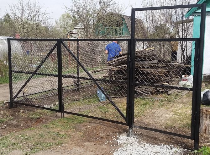 Как видите, самостоятельно обгородить свой участок рабичной сеткой проще простого, достаточно просто следовать приведенным выше рекомендациям по выбору и установке. Распашные ворота с рабичной сеткой – отличный вариант.