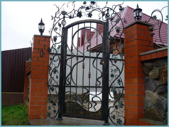 Кованая калитка станет изюминкой домовладения, и поразит гостей своей неповторимостью и респектабельным внешним видом. А если вы только начинаете осваивать искусство ковки, то можно изготовить несколько фигурных элементов и скомбинировать их с деревянной калиткой. Такая конструкция очень интересно смотрится.