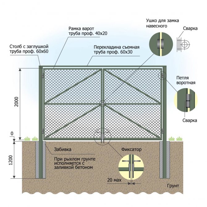 Не будет лишним, прежде чем строить, сделать чертёж калитки, на котором отразить её параметры, общий внешний вид, место крепления сваркой дверных петель, запирающего устройства и ручки. На бумаге определяют также, на какой высоте от земли будет навешена калиточная дверца.