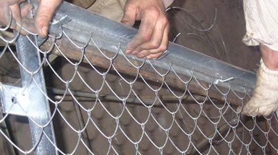 - Верхний и нижний пояс рабицы необходимо закрутить «косичкой» на несколько оборотов, а потом загнуть края. Так она будет плотно держаться и нигде не свисать.
