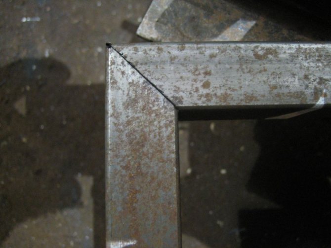 Запил в процессе изготовления заготовок лучше делать под углом в 45 о , чтобы в каркас не попадала вода. Кроме того, сварной шов будет иметь большую длину и, соответственно, прочность. Для новичков, оптимально будет отрезать под 90 о , а заготовки сваривать так, чтобы исключить попадание воды.
