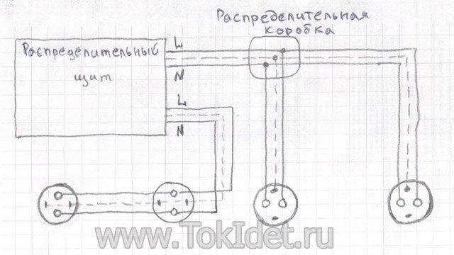 Этот тип соединения выбирают при необходимости подключить розетки, которые располагаются практически вплотную друг к другу.