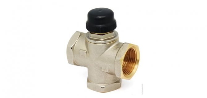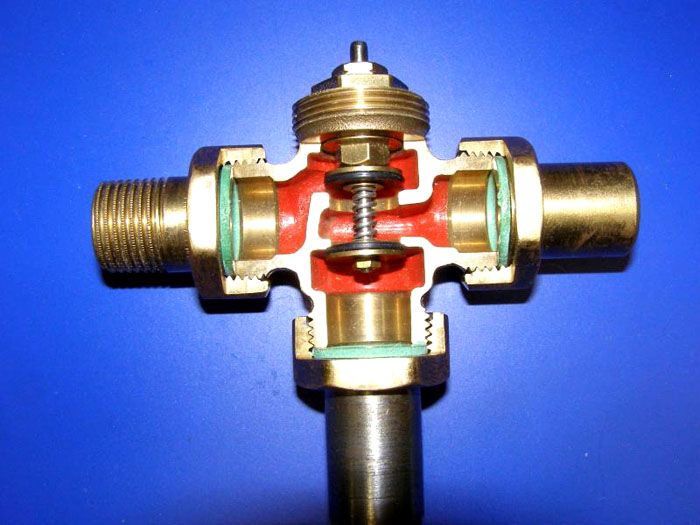 Обратите внимание! К запорной арматуре относится и аналог описываемого в статье прибора – двухходовой клапан. Чем он отличается? Дело в том, что трехходовой вариант работает по совершенно другому принципу. Шток, входящий в его конструкцию, неспособен перекрывать поток жидкости, который имеет постоянные гидравлические показатели.