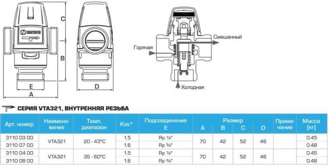 Элемент выбирают на заводе и там же устанавливают, поэтому на клапане обязательно указывают, какая температура на выходе будет после него. К примеру, если вам требуется клапан для теплого пола, то выбираем с температурой +45°С. Положительной стороной этих приборов является их дешевизна. Отрицательной – невозможность настраивать температурный режим воды.