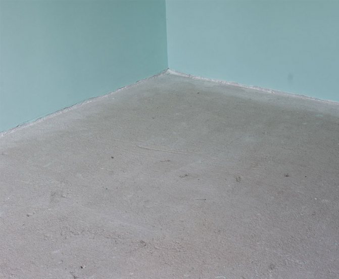 - Далее необходимо тщательно обработать с помощью кистей все углы помещения и труднодоступные участки пола.
