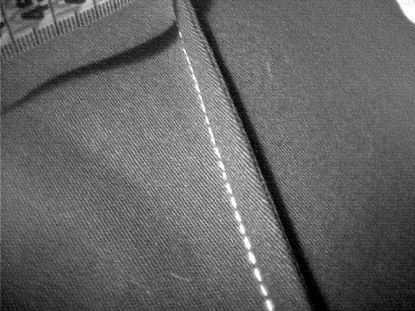 На следующем этапе отгибается припуск шва так, чтобы срез оказался внутри, и настрачивается шириной 0,7-0,8 см (см. рис.4).