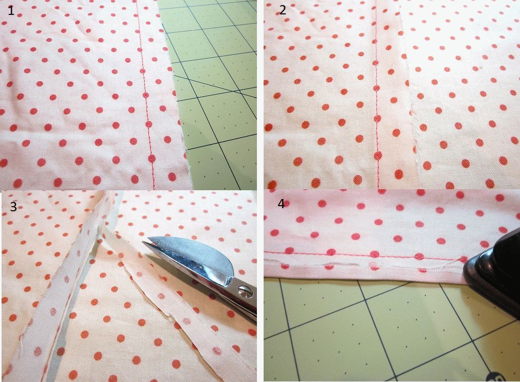 Добрый день! Подскажите, пожалуйста, как при обработке двойным бельевым швом обрабатывать углы при поливе наволочки? Попробовала на лоскутке — получилось грубовато: я прострачила по периметру отступив на 0,4 вывернула и снова прострочила — после того как вывернула на лицо — углы не нравятся. Спасибо.