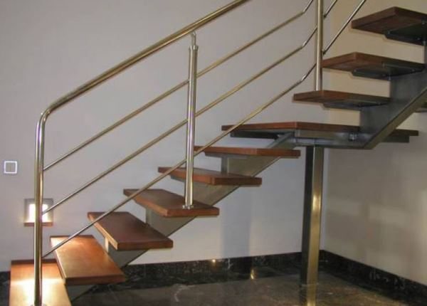 Несмотря на сложность монтажа, многие отдают предпочтение металлическим изделиям. Так как они не гниют и обладают высоким показателем прочности и надежности. К тому же устанавливаются они как к металлической, бетонной, так и деревянной лестнице.