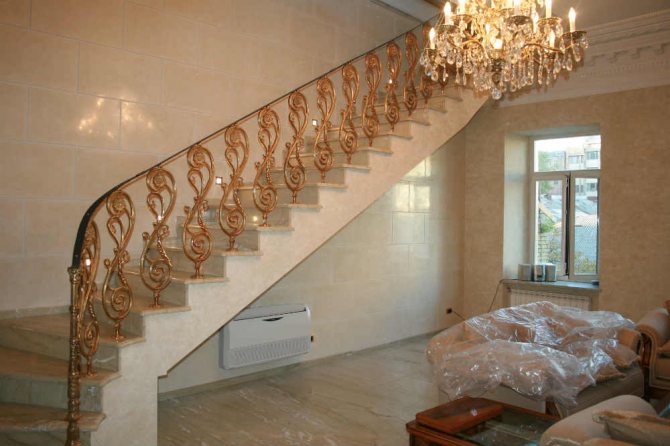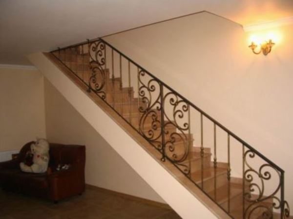 Также перила могут быть изготовлены путем ковки. Такой тип сборки считается самым дорогим. Однако выглядит такое ограждение интереснее всех вышеперечисленных вариантов. Изготовить их самому будет нелегко.
