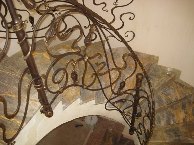 Сложные изделия в основном изготавливают путем сваривания. Последняя может быть аргонодуговой (отсутствие искр в процессе сваривания) и полуавтоматической. Чаще всего таким путем изготавливаются перила из черного металла или стали. Такая конструкция долговечна и прочна. Чтобы придать сооружению форму используют метод «холодной» гибки металла.
