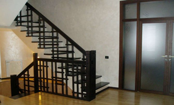 В деревянных, как и в металлических конструкциях, выделяют: тумбы, балясины и поручни. В деревянных конструкциях, балясины выполняют еще и декоративную функцию, а не только опорную. Чаще всего их делают из склеенного бруса и придают им различные формы.