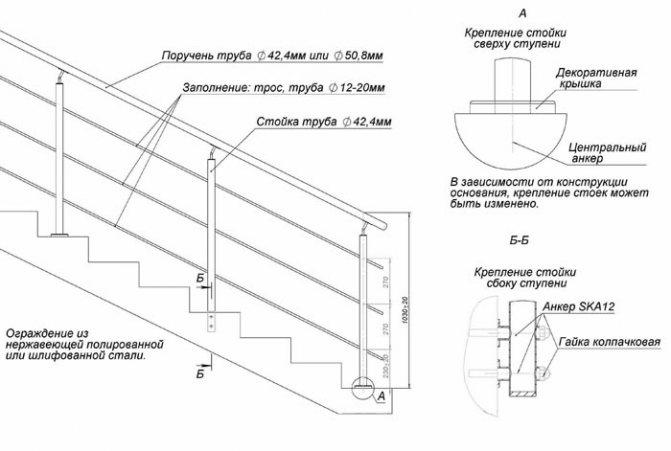 Перила из нержавеющей стали можно крепить как сверху балясин, так и сбоку с помощью фланцев.