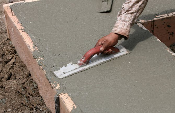 - Увлажняем водой основание дома и заливаем опалубку раствором;
