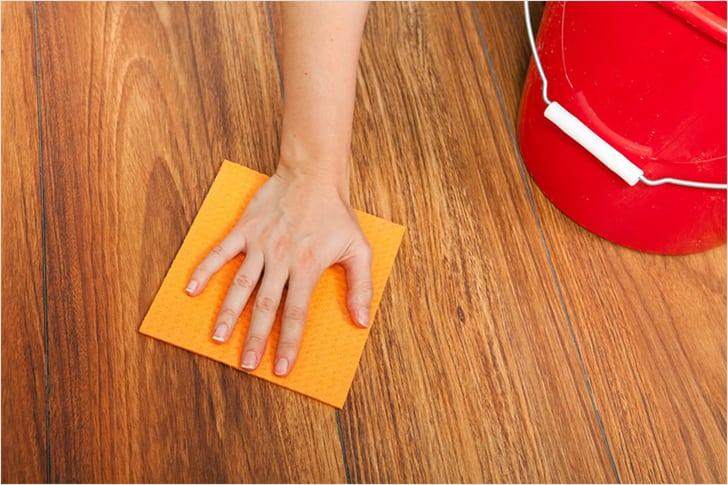При подготовке пола к нанесению лака важно не забывать, что привычные методы подготовки, рекомендуемые для деревянных полов, здесь не подходят. Зачистка шкуркой или циклевка сильно повреждают первый, защитный слой ламината. Если без этого никак, то здесь поможет только полная замена покрытия. Единственное, что возможно применить при очистке ламинированного пола без вреда поверхности – это аккуратное без абразивных средств.