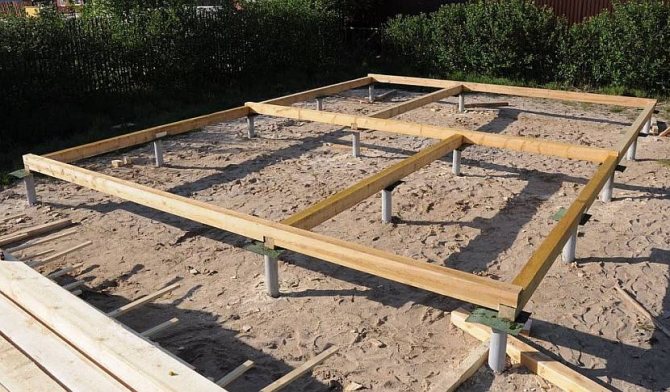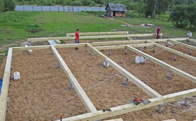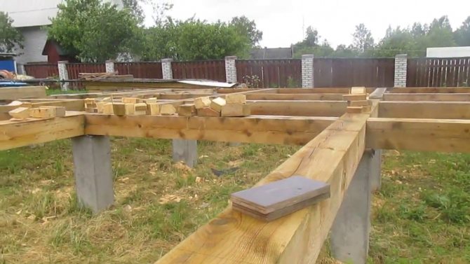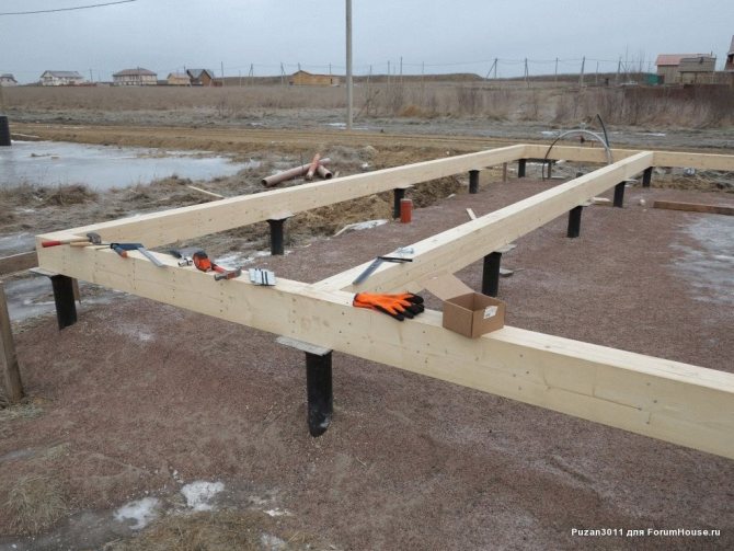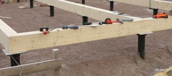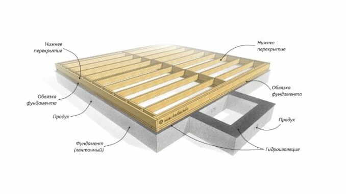 Обвязка представляет собой перекрытие между фундаментом и нижним основание здания и распределяет нагрузку от веса всего дома на все опоры.