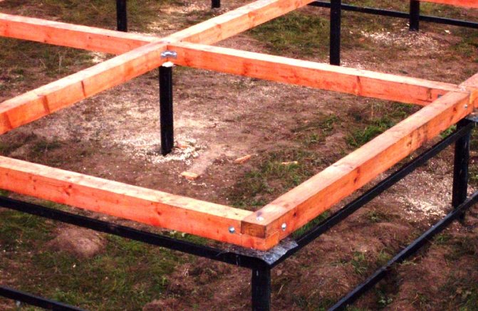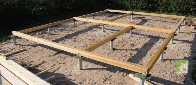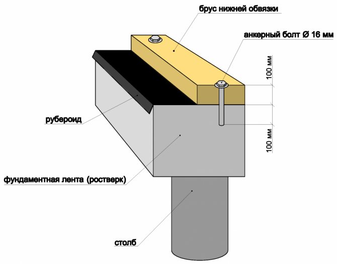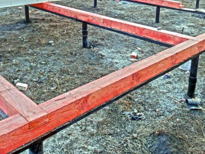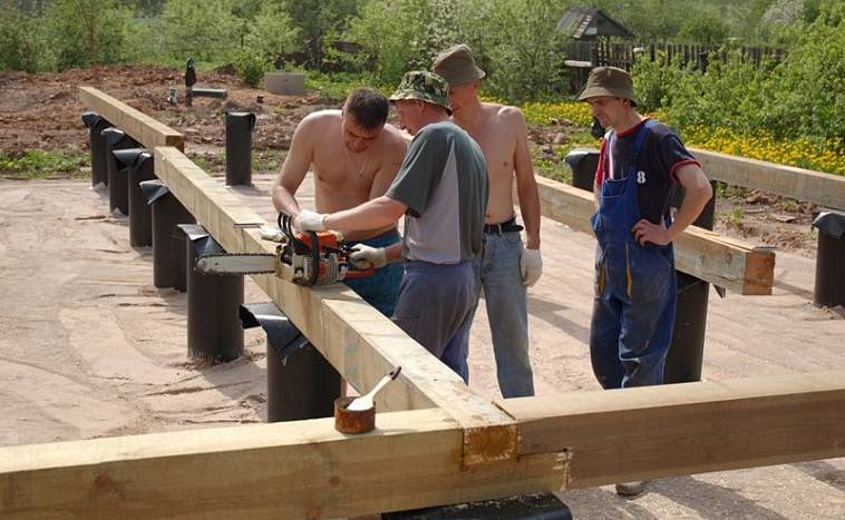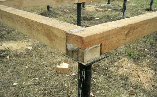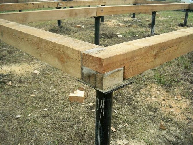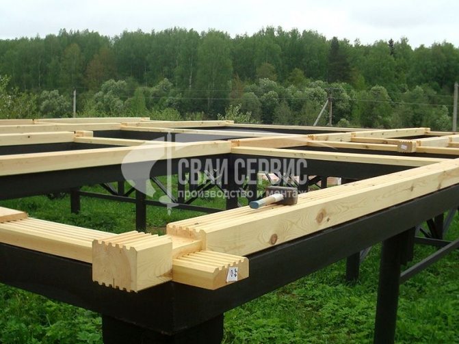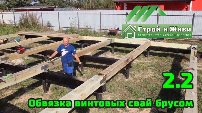 Выражение «обвязка свайного фундамента брусом» означает, что ростверком в конкретном случае служит нижний венец дома, жёстко связанный со сваями.