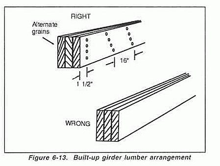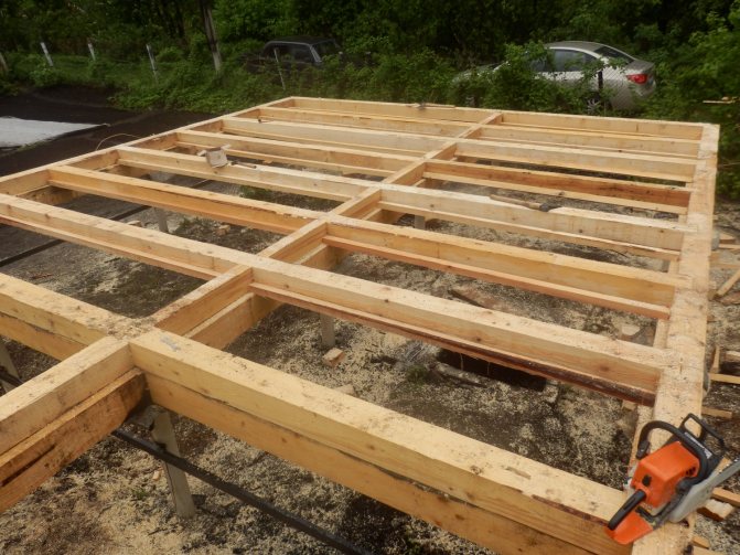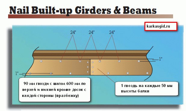 Если используется наборный брус (сколоченные доски) размером 50х150 или 50х200 см, то работы выполняются следующим образом: