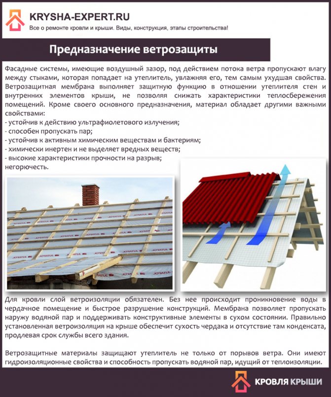 Полезно! Для крыши стоит покупать только специализированную кровельную ветрозащиту.