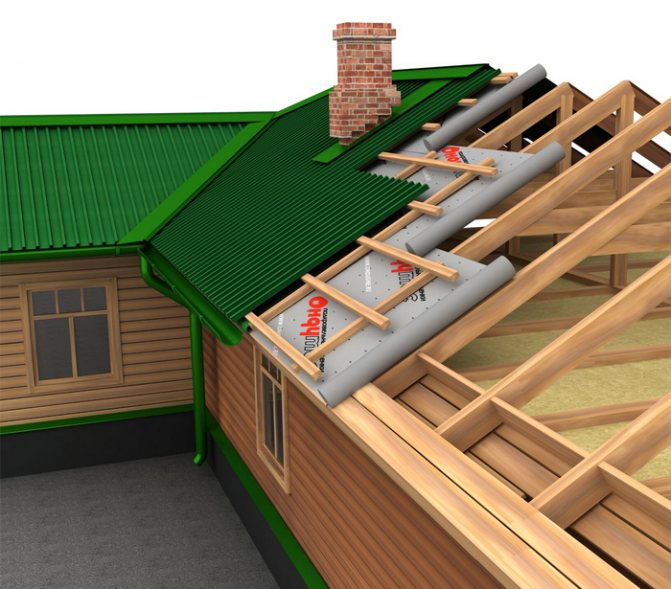 Полезно! На коньках, углах и других местах, которые хорошо продуваются или могут легко прорвать мембрану материал нужно укладывать в два слоя.