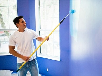 Для покраски лучше использовать малярный валик – он позволит быстрее и равномернее покрыть такой краской поверхность стены.