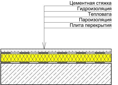 На плитах перекрытия (от внутренних помещений к чердаку):