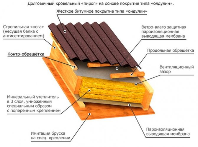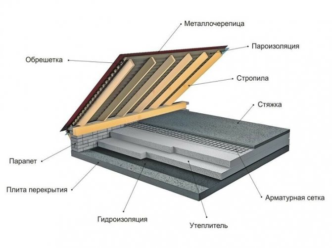 Кровельный пирог под металлочерепичное покрытие для жилых домов более сложный и состоит из:
