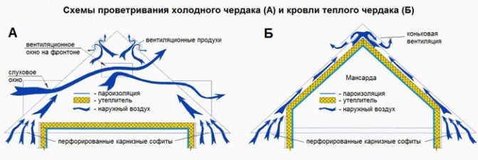 При устройстве холодной кровли принимают дополнительные меры для вентиляции чердака: