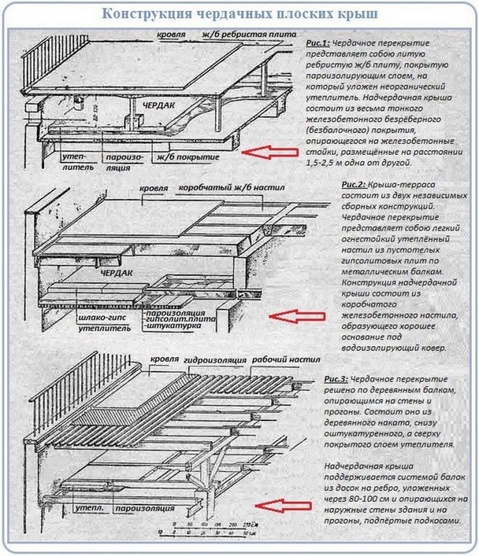 Гидроизоляционный слой на плоских чердачных крышах прокладывается лишь в конструкциях, имеющих деревянное основание