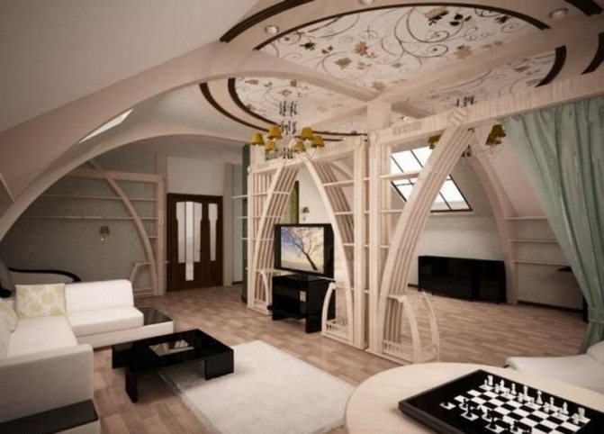 Облицовочными элементами из гипсокартона можно украсить мансардное помещение и даже разделить его на зоны