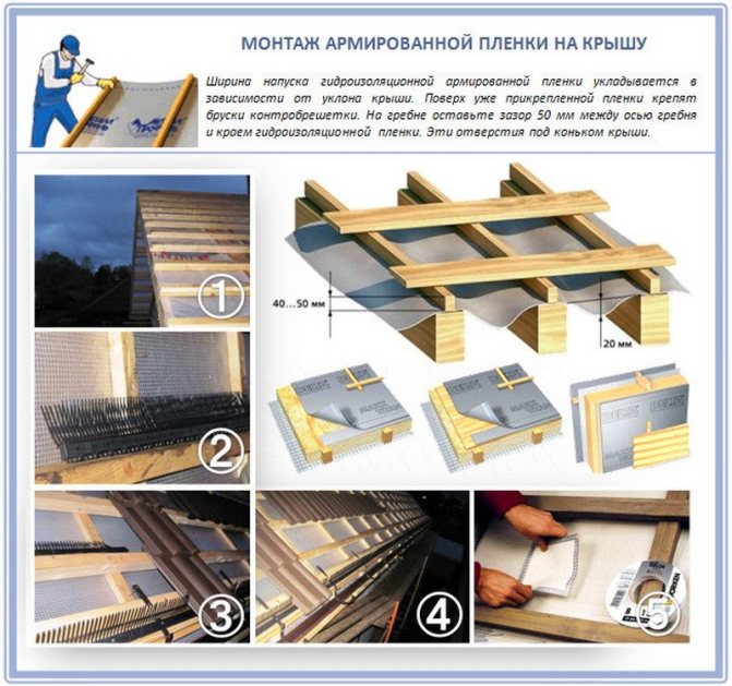 Для холодной металлочерепичной кровли делается вентиляционный зазор и укладывается гидроизоляционная плёнка