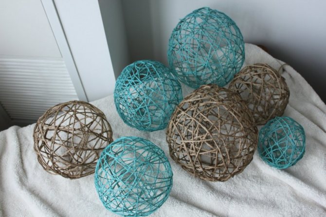 - Смажьте шарик клеем ПВА, обмотайте его нитками по всему периметру, не считая нижней части, чтобы при сдувании нитки держали бы круглую форму.