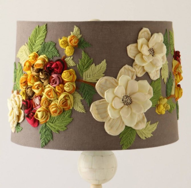 - При изготовлении абажура ткань можно использовать как целиком, так и делать мозаики из множества кусочков сразу.