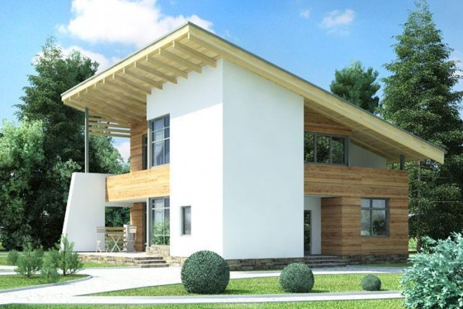 - Односкатные кровли в большинстве случаев делаются пологими. В основном встречаются конструкции с уклоном 5–15°. Хотя бывают и более крутые крыши с наклоном до 60°. Всё зависит от ветровой и снеговой нагрузки в регионе строительства.