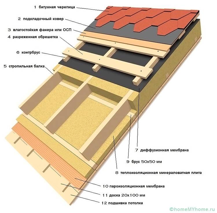 На нее крепится обрешетка, а также системы теплоизоляции, пароизоляции, гидроизоляции, обеспечивающие комфортную атмосферу в доме.