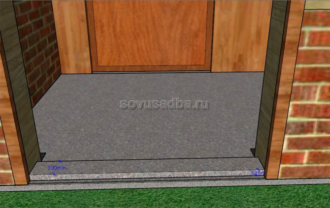 - Глубина площадки перед входом должна быть равной ширине проема плюс один метр. Меньше делать нельзя, иначе находясь на ней, вы не сможете распахнуть дверь.