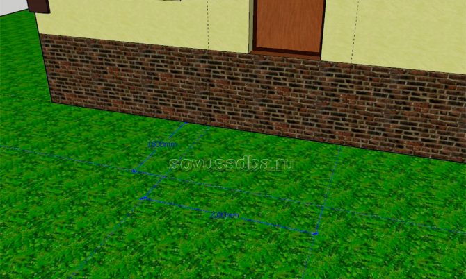 Разметка выполняется с помощью бечевы, натянутой на колышки