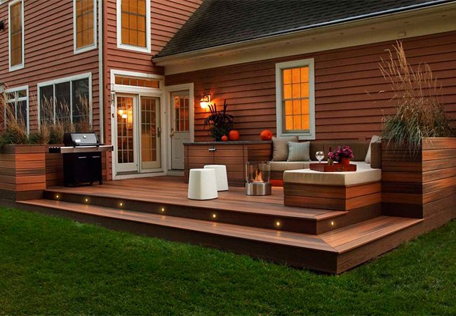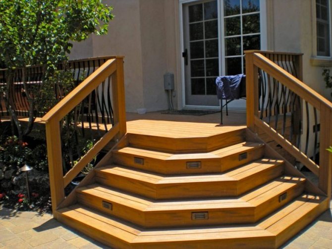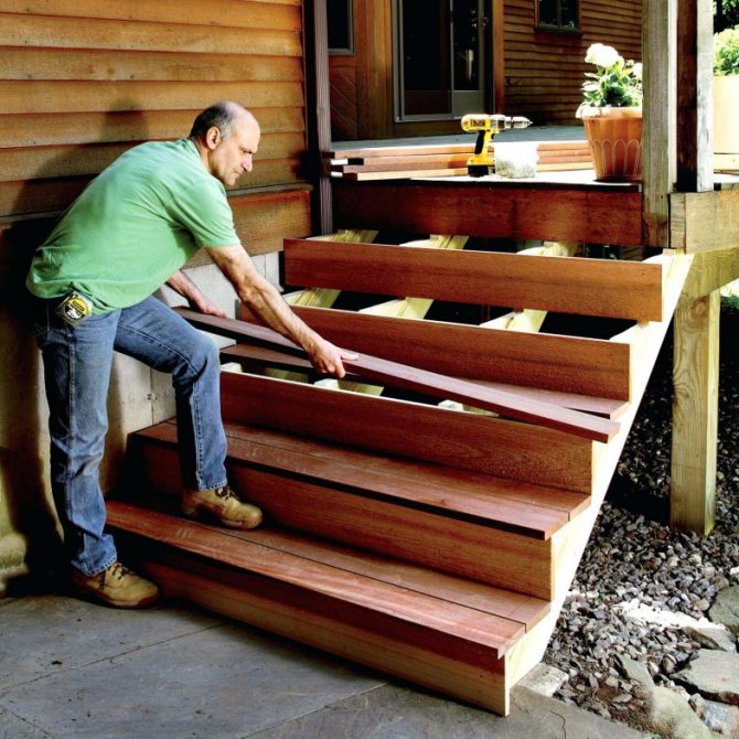 Для отделки применяют различные материалы, учитывают общий экстерьер дома и элементы ландшафта. Ступени чаще облицовывают керамикой с шероховатой поверхностью или нашивают доски.