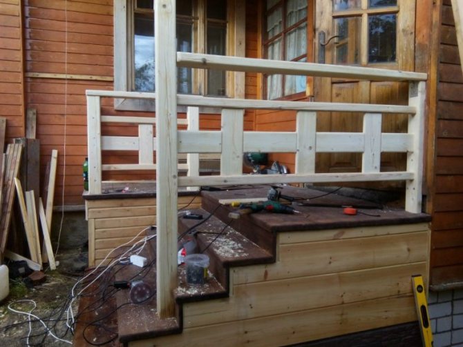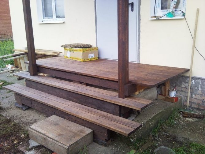 Уже на фундаменте выкладывается первоначально каркас, после чего размещаются ступеньки. По завершению работ необходимо обработать все крыльцо дополнительными средствами, пропитками.