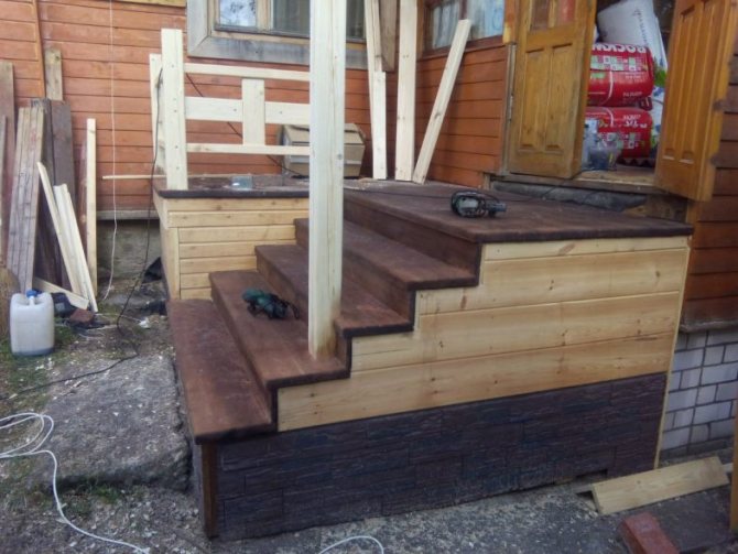 Это убережет древесину от вредителей и пагубного воздействия климатических условий. Стоит понимать, что внешнюю облицовку крыльца, равно как и покрытие пропиткой, придется проводить ежегодно, учитывая большую и постоянную нагрузку на конструкцию.