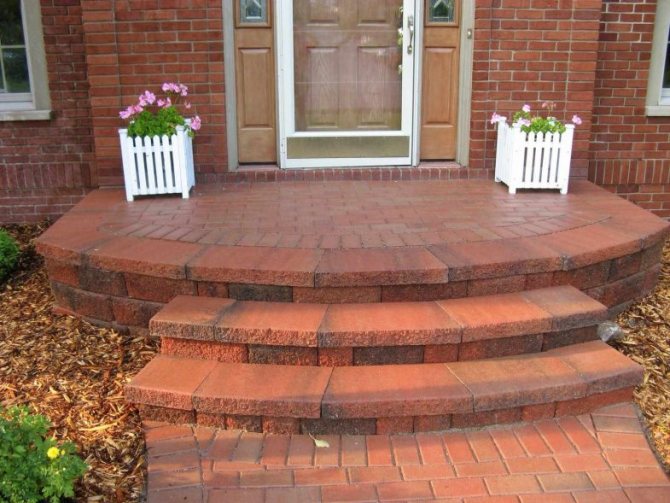 Кирпич является одним из самых популярных материалов для возведения крыльца. Как и в предыдущем случае, рекомендуется иметь навыки работы с этим материалом, потому как выкладывать необходимо максимально ровно.