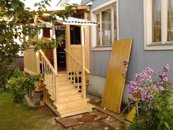 Но в большинстве случаев о необходимости построить ступеньки к входной двери и соорудить навес над ней дачники вспоминают уже после завершения строительства. Не беспокойтесь. И в этом случае можно построить красивую, надежную и прочную конструкцию.